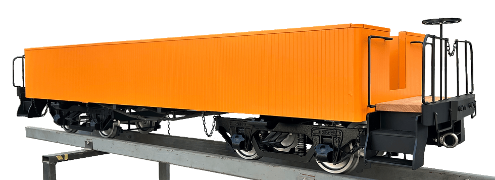 Each car is built to order (BTO). Custom paint schemes of up to two colors and decals are included in the price. Additional options are available, making these cars both functional and visually appealing additions to live steam or electric railroads.